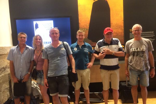 Portugal, Spanien und Gibraltar - Bericht von LaszloPerfektes Wetter in San Sebastian, und auf dem Weg zu den Flugzeugen. Links steht die D-ELRO von Capt. Johnny und Willi Blum … und davor die «Red Box». Jedes Team musste erst seinen Flieger
