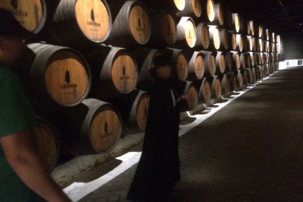 «Sandeman Porto» … wir kamen gerade noch rechtzeitig um eine ausführliche Führung durch die dunklen und edel beleuchteten Lagerhallen zu bekommen.