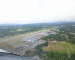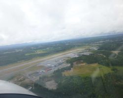 Morgens wieder früh auf, wie prognostiziert Regen und tiefe Bewölkung. Alle drei Flugzeuge starten kurz hintereinander und fliegen der Westküste entlang Richtung – wie kann es anders sein – NORDEN… In Sodankylä benutzten wir nur die Infrastruktur der Piste und der Tankstelle. Höchstpreis für Avgas 3,60 pro L – iter das geht unter die Haut. Starten den der Wind steht immer noch gegen uns mit 30 ktn. Rechtzeitig erreichen wir Rovaniemi, anspruchsvolle Landung, gleich mit einem Taxi ab ins Hotel und wieder feines Essen. Man könnte meinen es wäre ein kulinarischer Ausflug und nicht ein Fliegerausflug . . . . Es ist Mitternacht und immer noch hell. . . Also Vorhang zu und schnell schlafen, denn das Renntiermenue hat uns richtig gut gefallen und wir haben uns verplaudert.