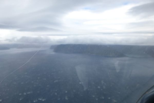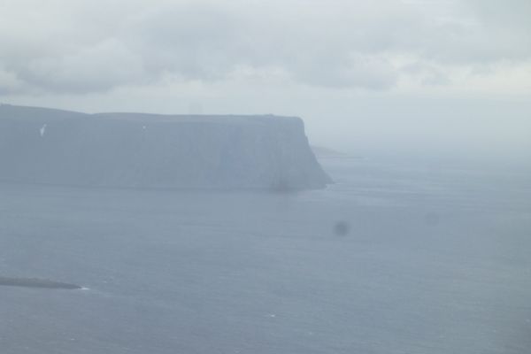 Wir einigten uns, dass der eine oder andere Platz noch mitgenommen wird, sei es als „low approach“ oder „touch&go“. Das Wetter zog immer weiter zu und der Wind frischte auf satte 45 Knoten auf. Die FN war NR 1 wie es sich gehört die SS NR 2 und die EI NR 3. Die SS, unser Packesel, war richtig schweeeer. Gerd nahm alle Plätze mit und so kam es, dass die letzte Umrundung zum Norkapp bereits mit Nebel und Regen bis zum Wasser verhangen war. Wir versuchten dennoch durchzukommen, aber es bockte so heftig, dass mir wieder mal die Hex heftig ins Kreuz geschossen ist.