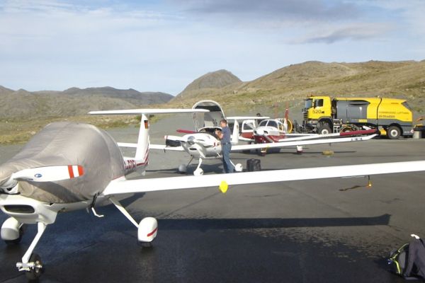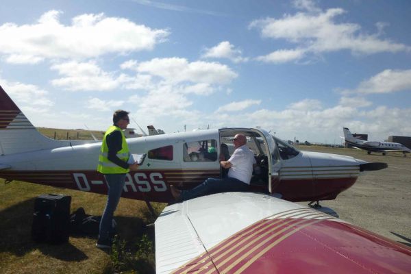 und Total schenkt jedem Flugzeug 5 Liter Avgas als herzliches Willkommen auf der Insel.