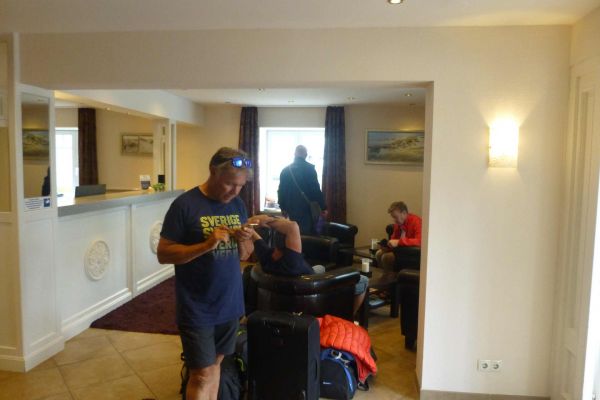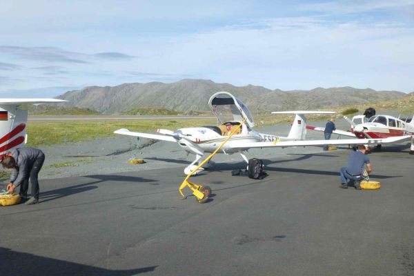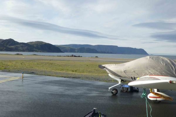Das Taxi ist bestellt und es kommt nicht und kommt nicht . . . Im ganzen Ort gibt es nur 2 Taxis und die sind voll gebucht obwohl wir am Abend davor den Termin ausgemacht haben . . . Unser Flugplan ist in Gefahr und auch unsere Ankunft ca. 45 min Verspätung. Beginnt ja schon gut, der Eine raucht noch zwo drei „Tschick“ der andere geht noch ein wenig spazieren alle sind angespannt, weil auch der Wetterbericht das erste Mal auf dem ganzen Trip nicht ganz optimal ist, aber das soll ja so sein am nördlichsten Teil sagt die Rezeptionistin. Sie hilft uns dann noch zum ersehnten Taxi. Angekommen am Flugplatz gibt es gleich die nächste Überraschung.