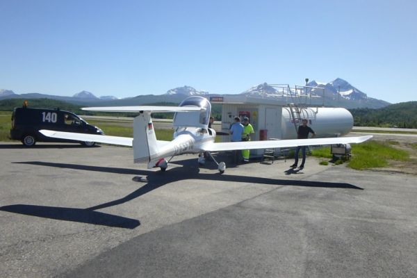 Mit dem Taxi zum Platz, zur Sicherheit noch die Kanister in die EI und die FN gefüllt und ab nach Bardufoss – ein Militärplatz – gibt nicht viel, aber er hat Sprit. Es hat sich ja schon eingebürgert, dass es zu Mittag nichts zu Essen und nichts zu trinken gibt.