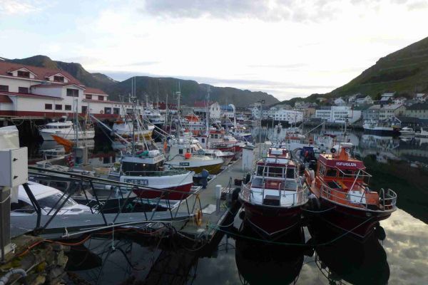Endlich es geht ab in Lakselv. Das Wetter hat sich verbessert und ca 30 min später waren wir in Hooningsvag. Der Anflug ist schön, man wird mit hellen Lichtern richtig um die Kurve in den Endanflug der Piste 26 geführt. Der Platz ist offen das Taxi recht schnell da. Obwohl es wieder nur ein Taxi für den ganzen Ort gibt, das auch noch einen Fischer holen, die Crew von der „mein Schiff“ zum Flughafen fahren und unsere Kollegen noch ins Hotel bringen muss.