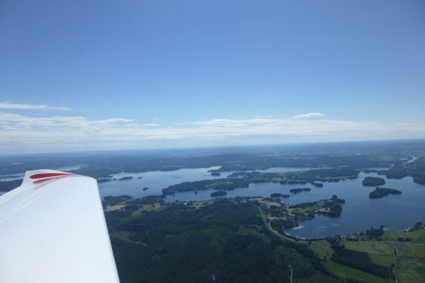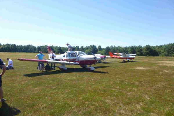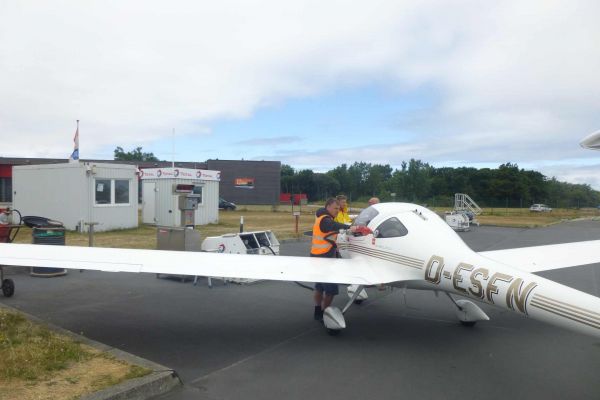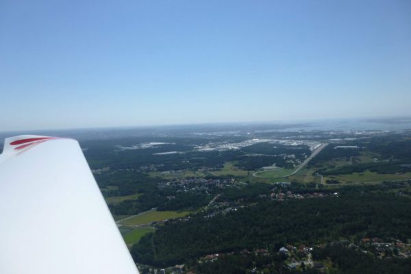 Der SS hat der Sprit gereicht. Die FN hat die Kanister geleert und Roman und Hartmut hat mit viel Geschick einen UL Piloten dazu bewogen, Ihnen Super 95 zu verkaufen. Endlich preiswerter Sprit für Roman. Da könnte das Flugzeug preiswerten Sprit schlucken, aber dort oben gibt es preiswert generell für unsere Maßstäbe nicht. So ungerecht ist das Leben. Raus sind wir dann kurz hintereinander und haben sofort Göteborg ins Visier genommen.
