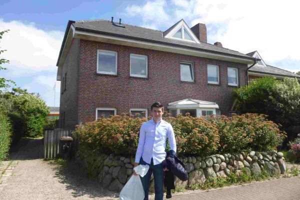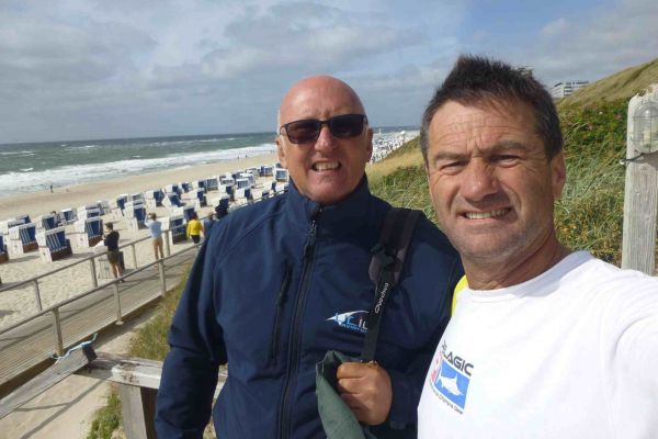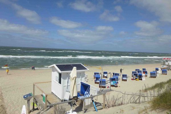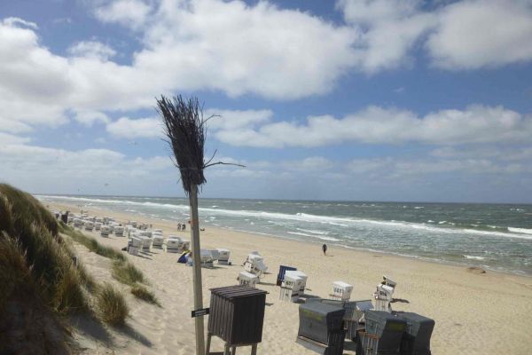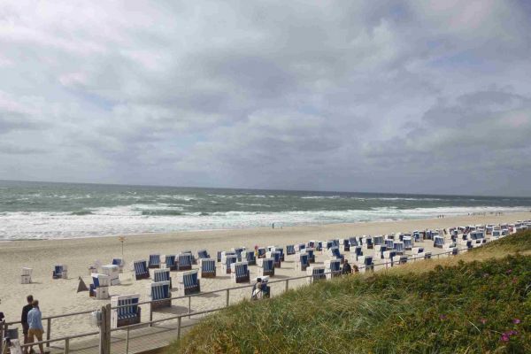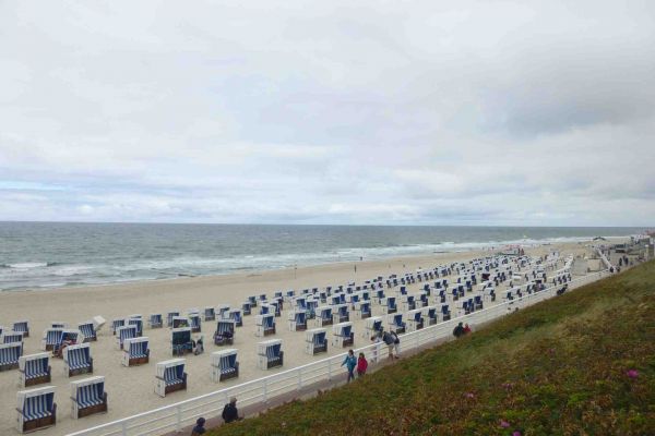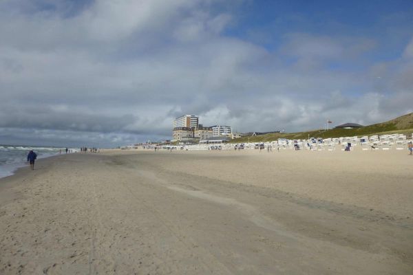 Angekommen bringt uns das Taxi zur blauen Muschel (nur Hotel) wer anders Denkt ist selber schuld – mitten in Westerland. Dann gleich mal an den Strand – Gott sei Dank haben wir Kappe und Anorak dabei, schöner Anblick aber sehr viel Wind.