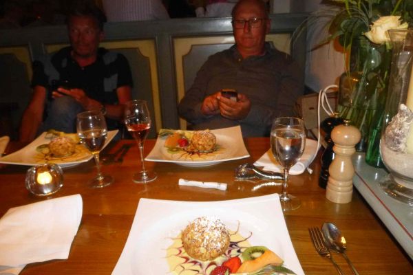 Am Abend kommt das High Light des Trips. Roman`s Sohn arbeitet in einem Haubenlokal-normalerweise 3 Wochen Wartezeit auf einen Tisch. Wir haben den grössten Tisch bekommen und der Chef(in) hatten eine riesen Freude, dass wir extra zu Ihnen geflogen sind. Es wurde geföllert. Taitinger Rose Trüffel und Fisch – ohh ist das Leben schön!!
