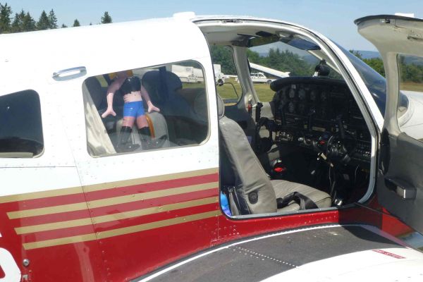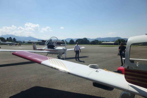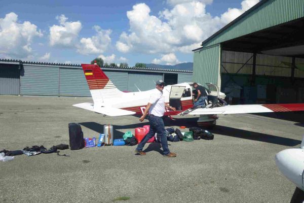 Die Piste kann doch recht kurz werden, bei 3000 Fuss 25 Grad und Rückenwind mit 12 kt!! So mussten wir noch die Grassfläche ein wenig mitnehmen beim Start.